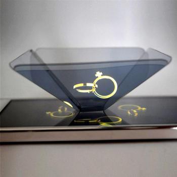 Logotipo personalizado 360 grados 3D proyector holográfico 3D holograma Pirámide para teléfono móvil Premium proyector de teléfono móvil